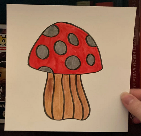 Red Ink Mushroom 8x8 Inch Original Fungi Illustration