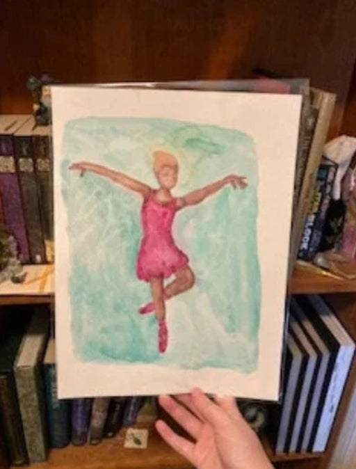 Dancing Ballerina In Pink Tutu 9x12 Inch Unframed Original Watercolor Illustration