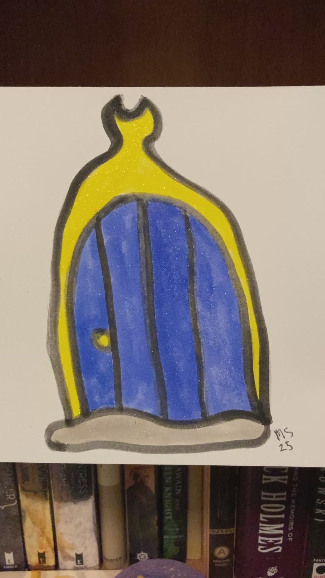 This original artwork features a magical fairy door with a crescent moon symbol and glitter effects thanks to Mica infused India Inks.