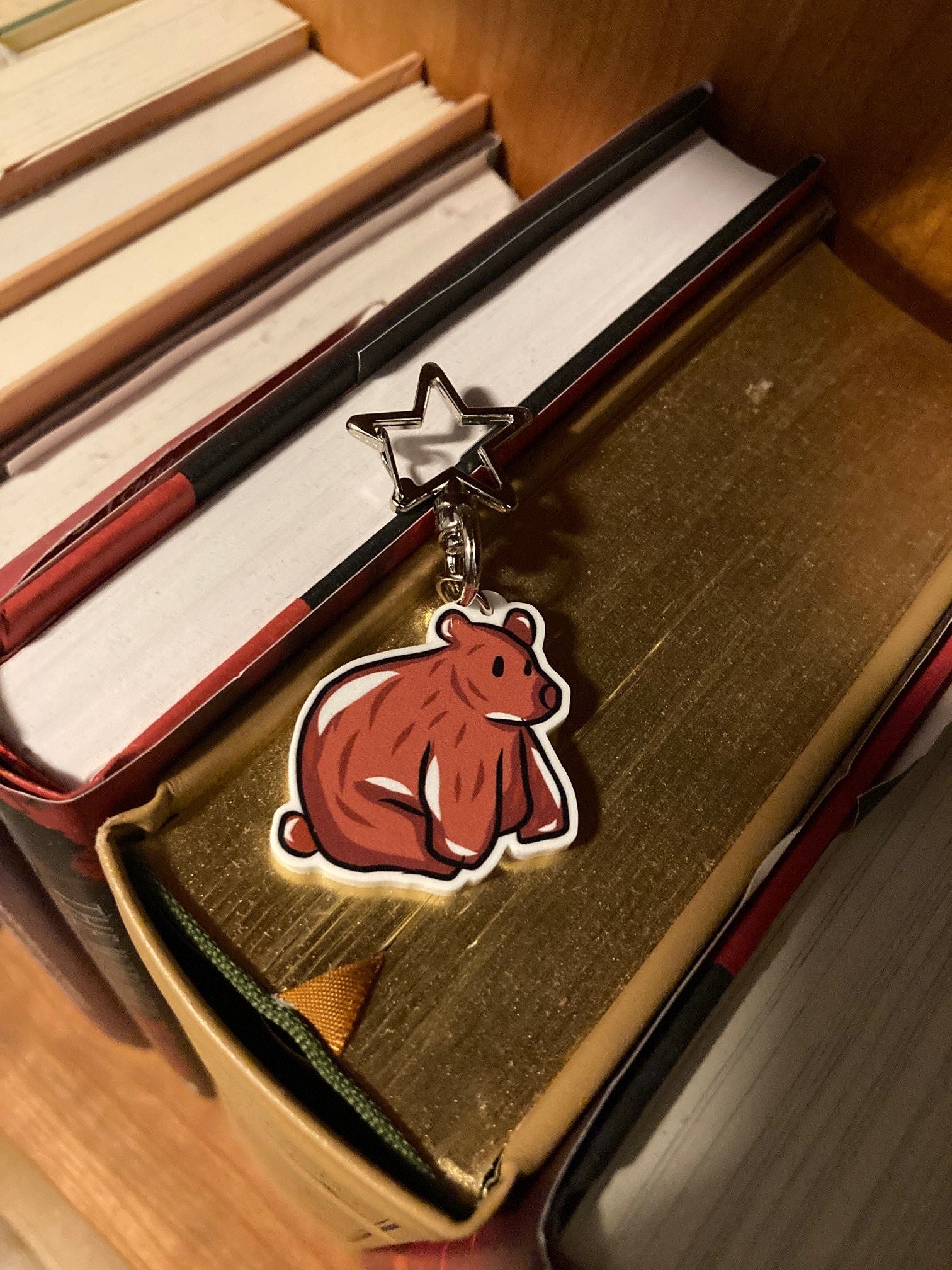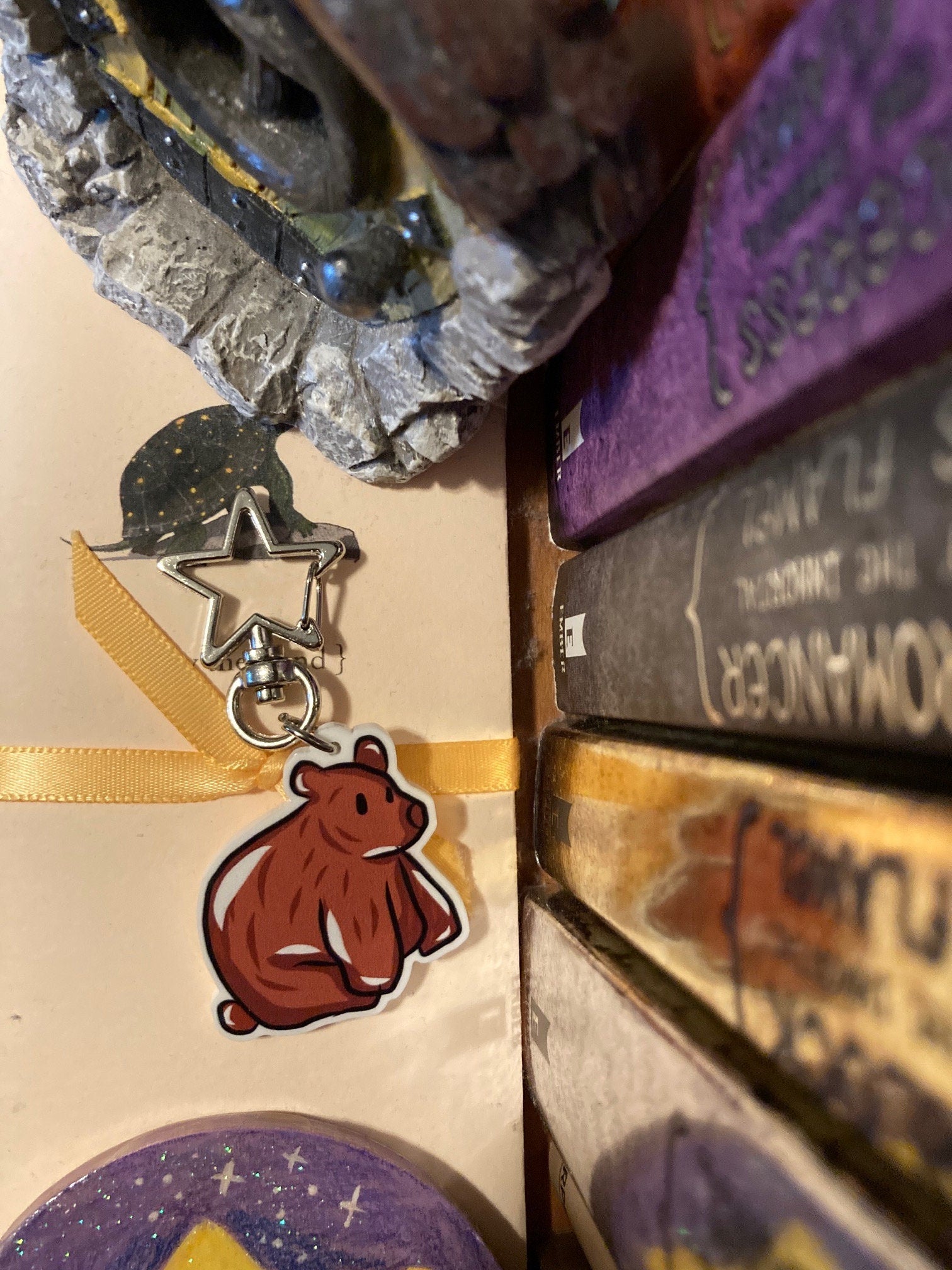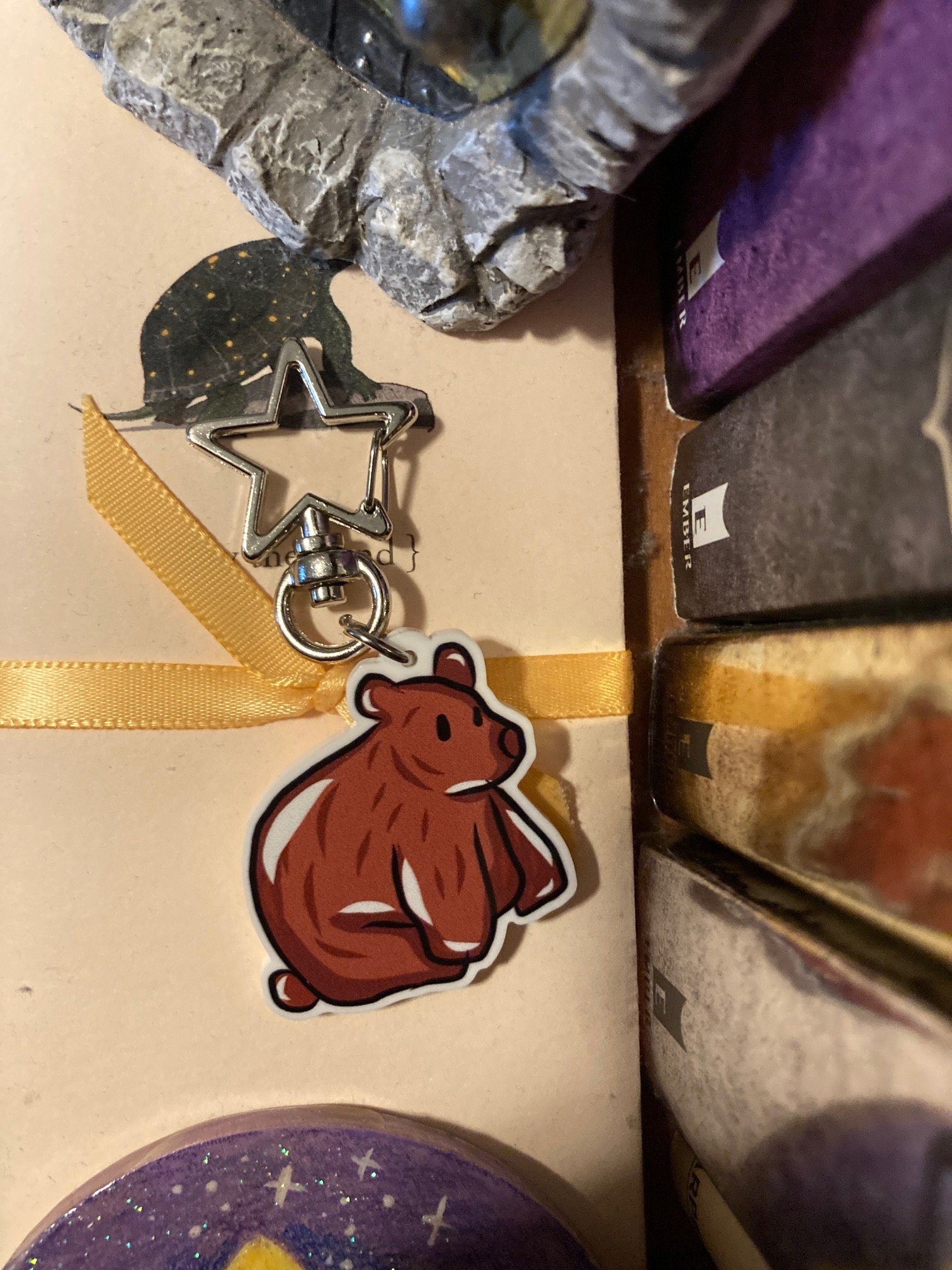 Brown Bear 2 Inch Acrylic Keychain Charm With Silver Or Gold Star Lobster Clasp (CLEARANCE)