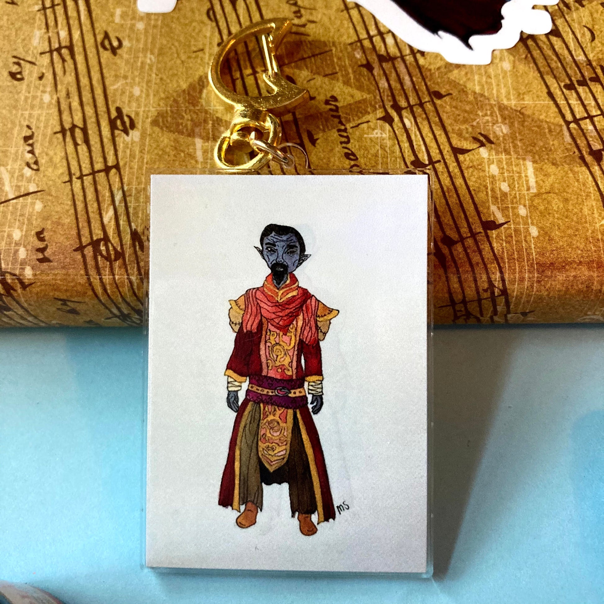 This ecofriendly keyring is printed on both sides featuring a watercolor painting of a certain tea obsessed master wizard.