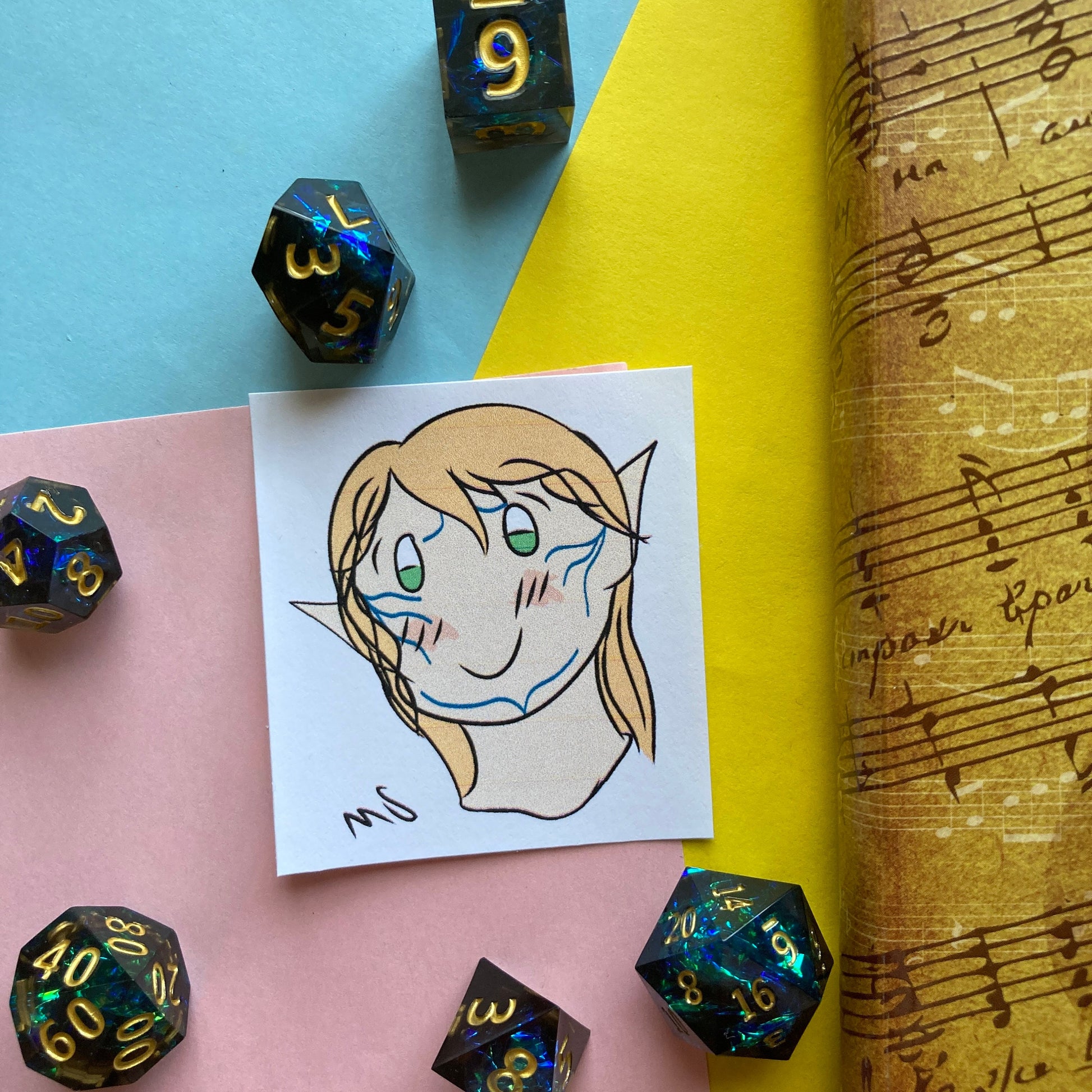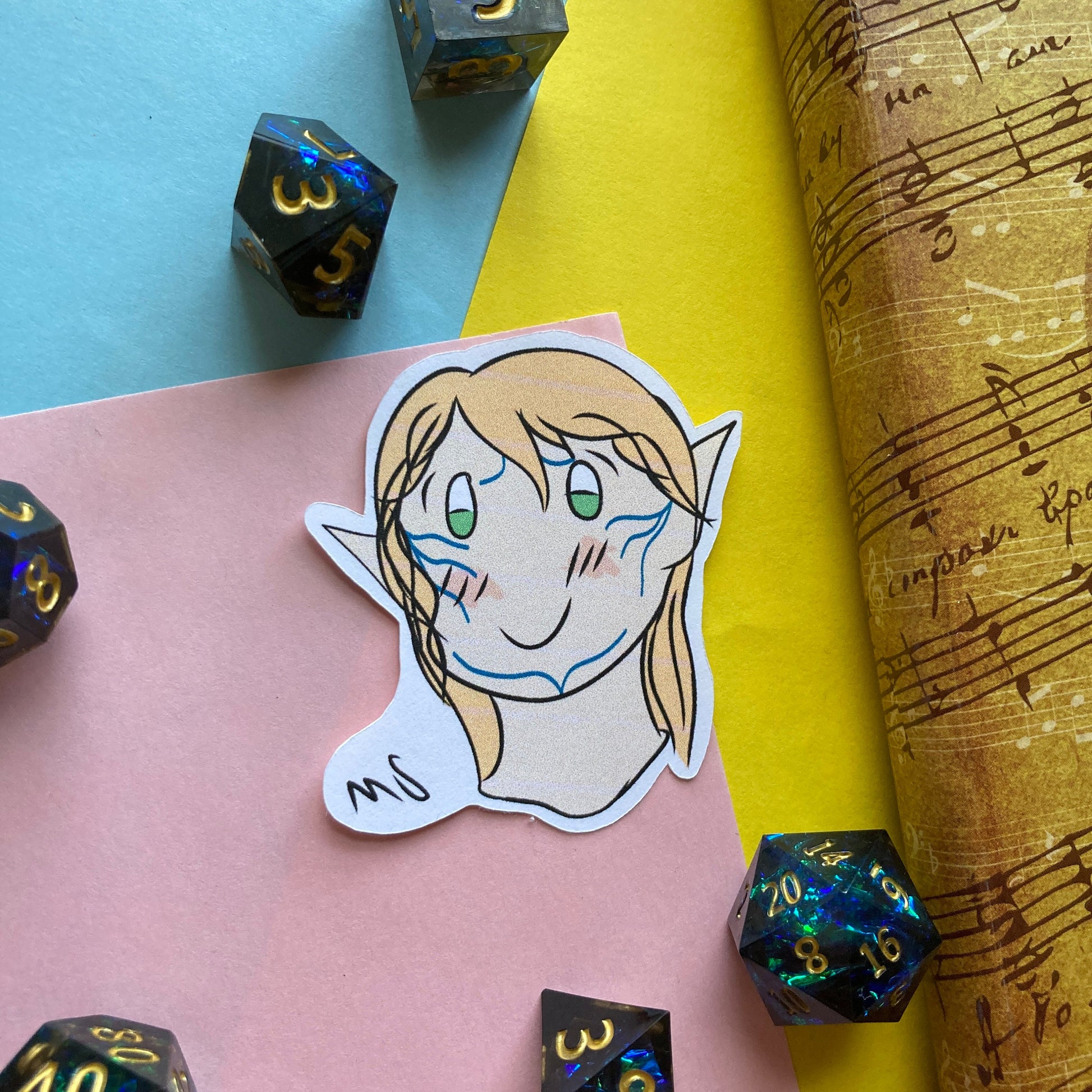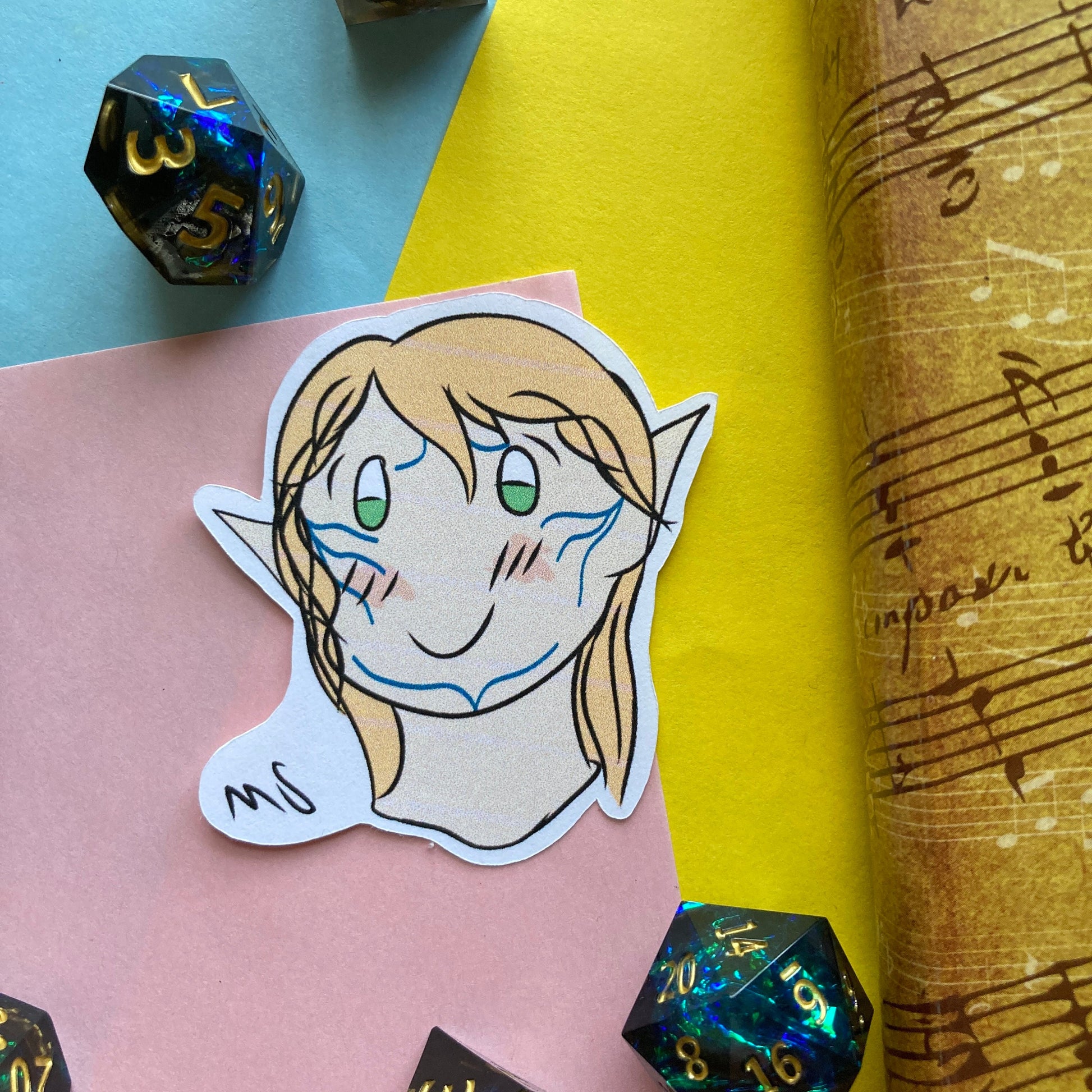 Made for the fantasy fan this cute happy sticker of an Elf. If you're a fan of Video Games, or just like fantasy this cutie is perfect for you.