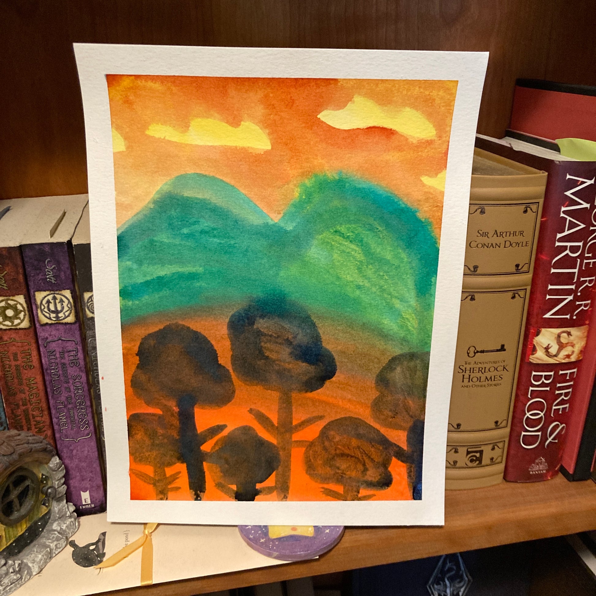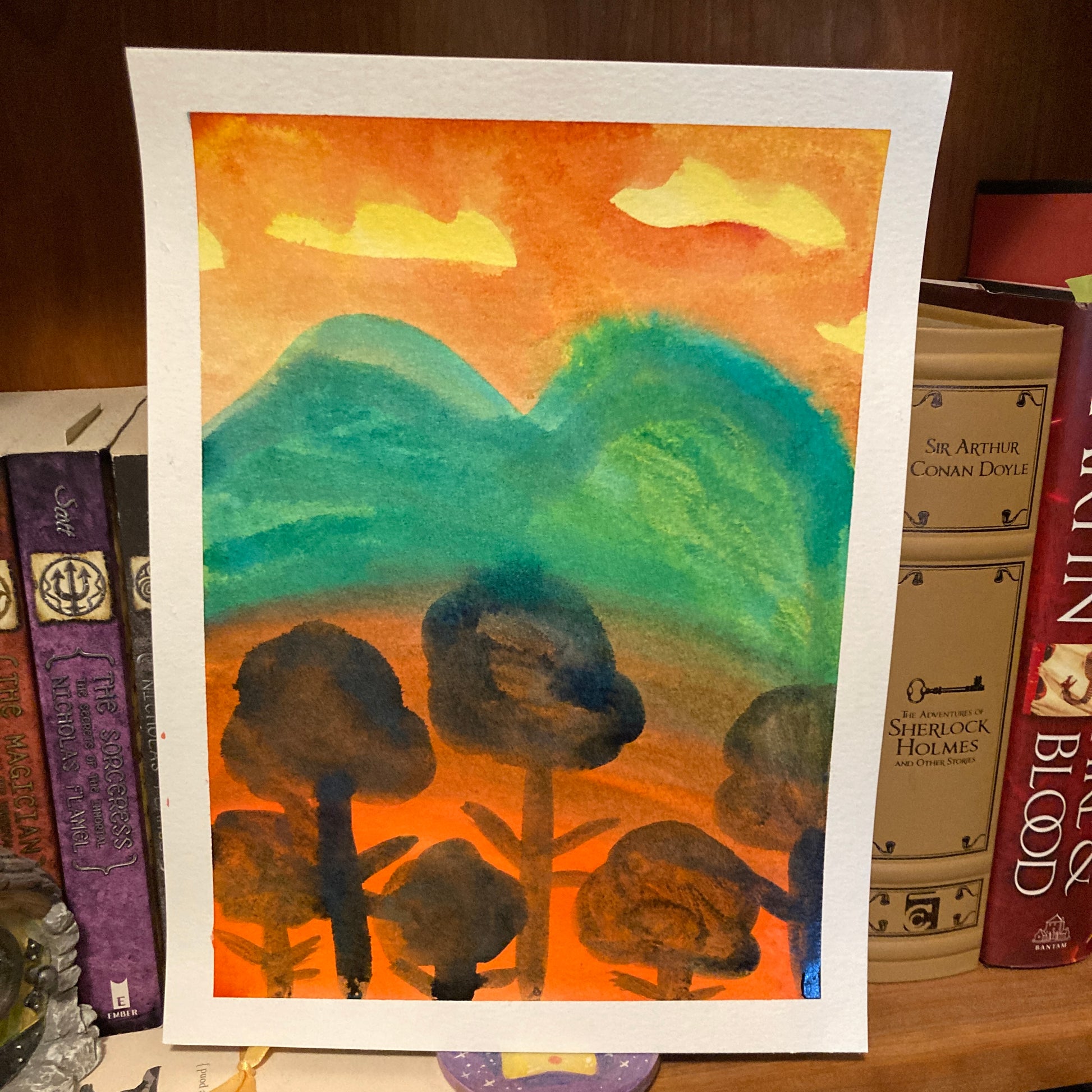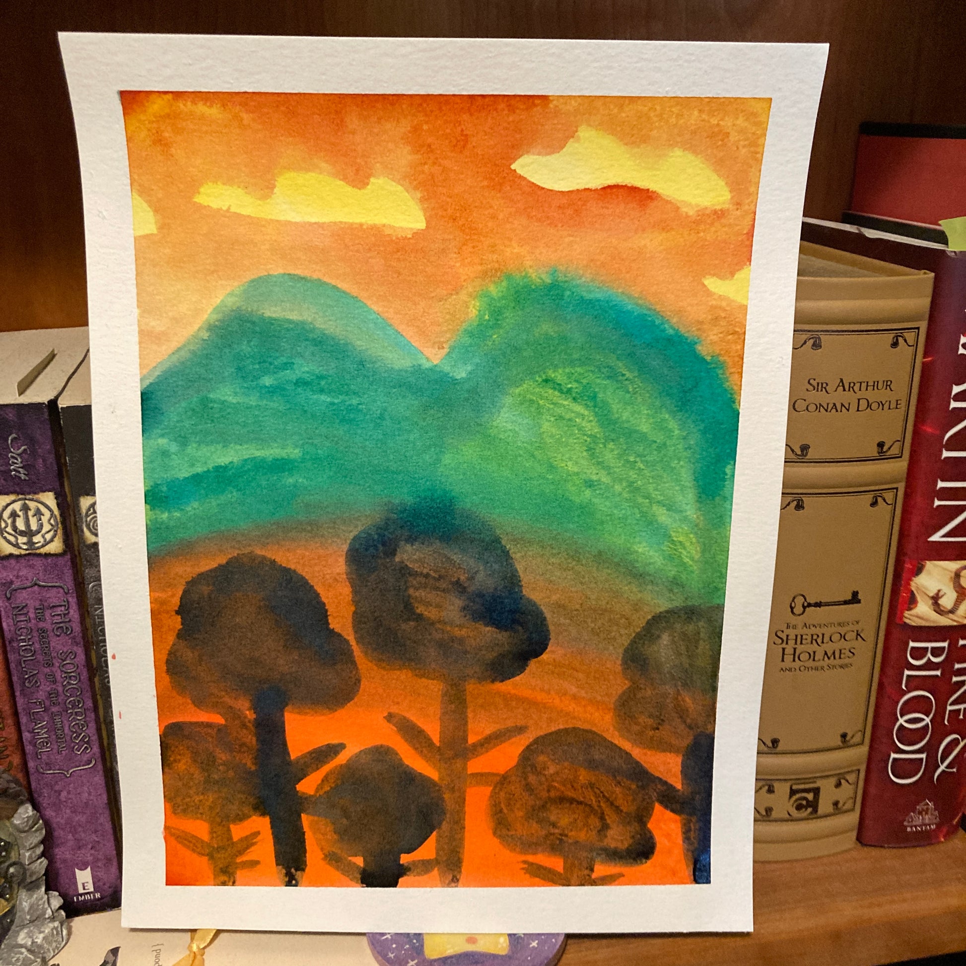 Orange Landscape 9x12 Original Reverse Ink Painting