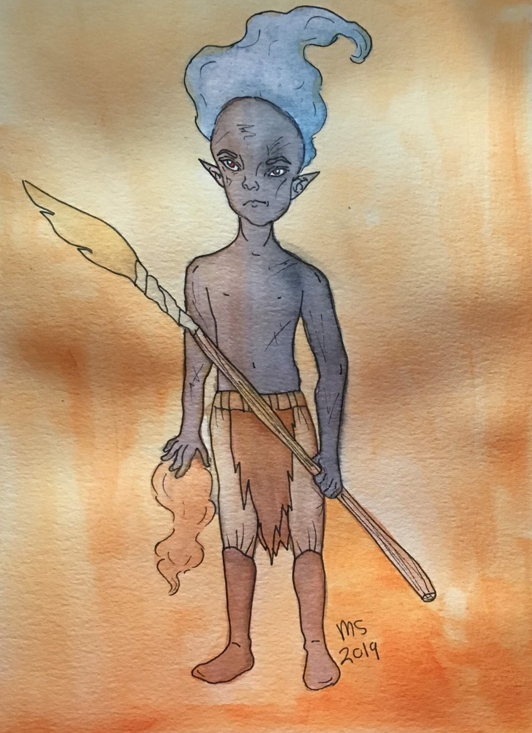 Made from recycled acrylic with a gold moon or star lobster clasp this eco-friendly keychain features a watercolor painting of the legendary warrior and renown poet demi-god armed with his spear.